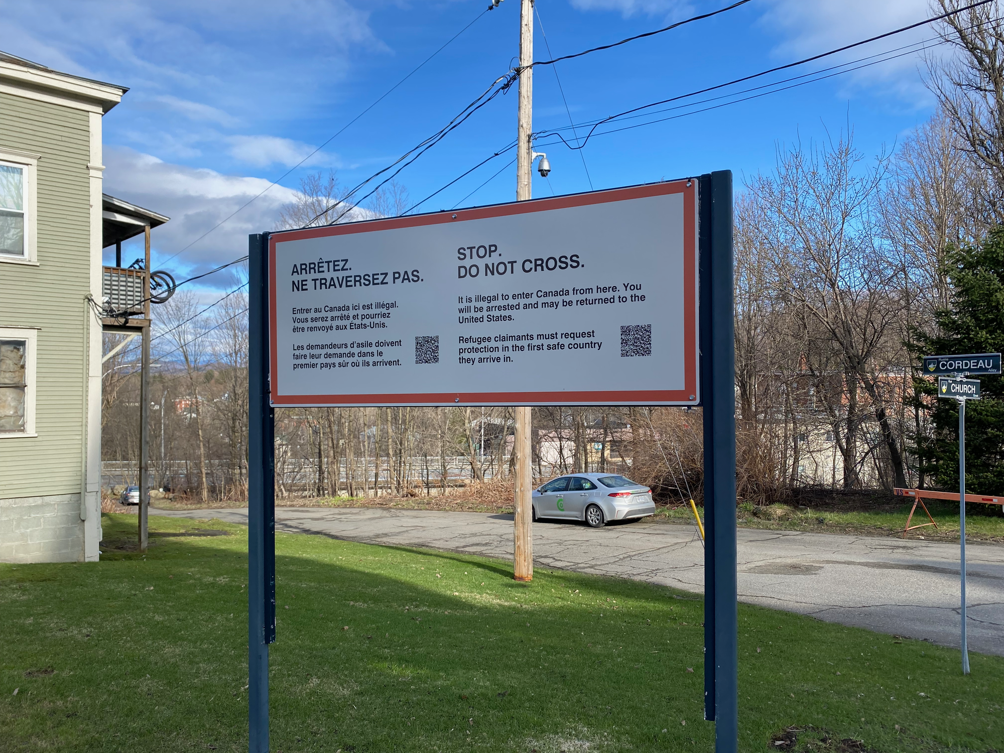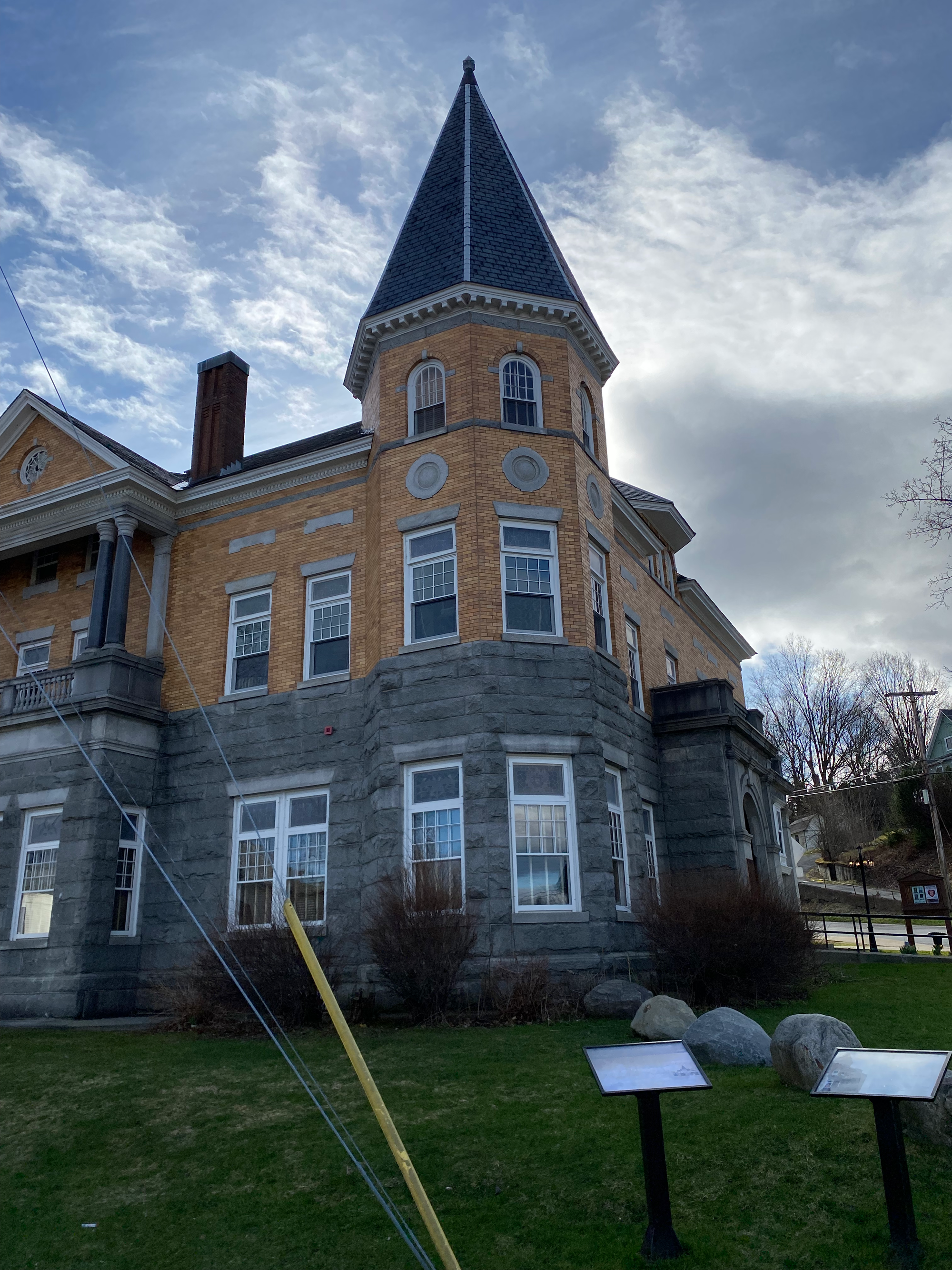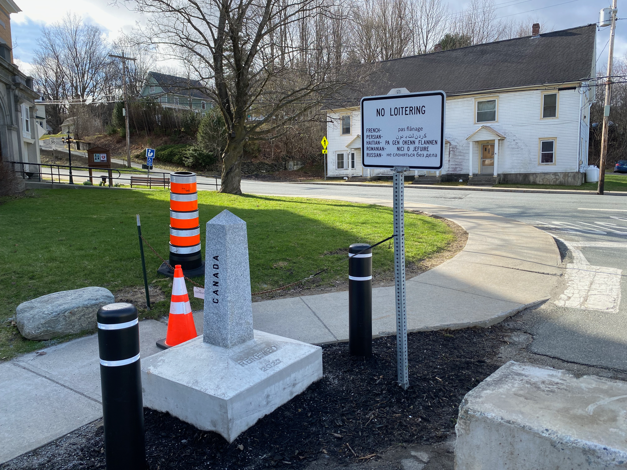 The mountain is over three hours from Montreal so we left early. Along the way we stopped in the town of Stanstead, Quebec, effectively the same town as Derby Line, Vermont, separated by the border. It reminded me of Point Roberts, Washington, another border anomaly. Posts mark the border, roads are blocked off, and signs warn against loitering. Running errands must be extremely annoying. We visited the Haskell Opera House and Free Library, located directly on the border. The entrance is on the American side; apparently you’re allowed to cross the border to access the building, but Border Patrol watches the sidewalk closely. Unfortunately the library was closed.