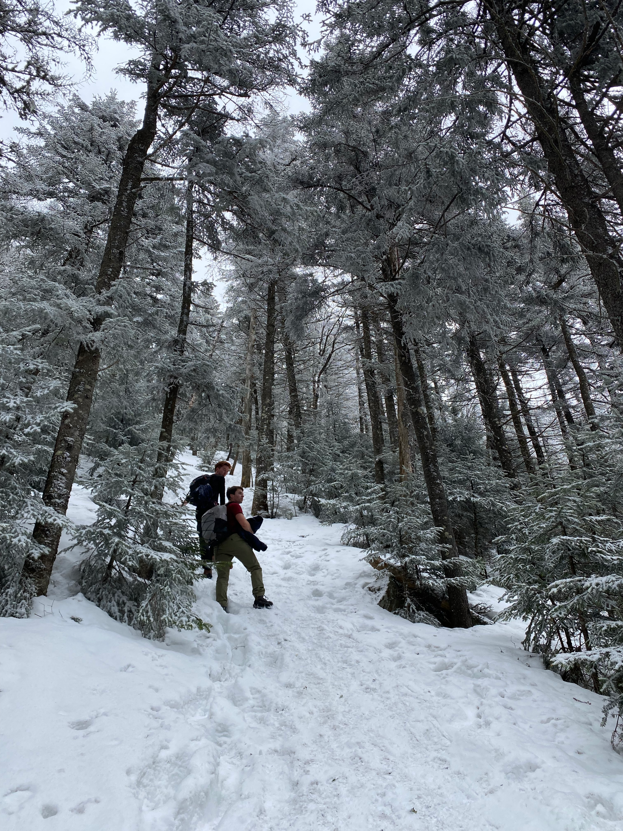Along the way, we were warned about a guy wearing jeans, a T-shirt, and leather boots. We passed him at one of the waterfalls; somehow he’d made it to the summit and back. A few kilometres later a girl passed us, wearing running shorts and seemingly unbothered by the cold.