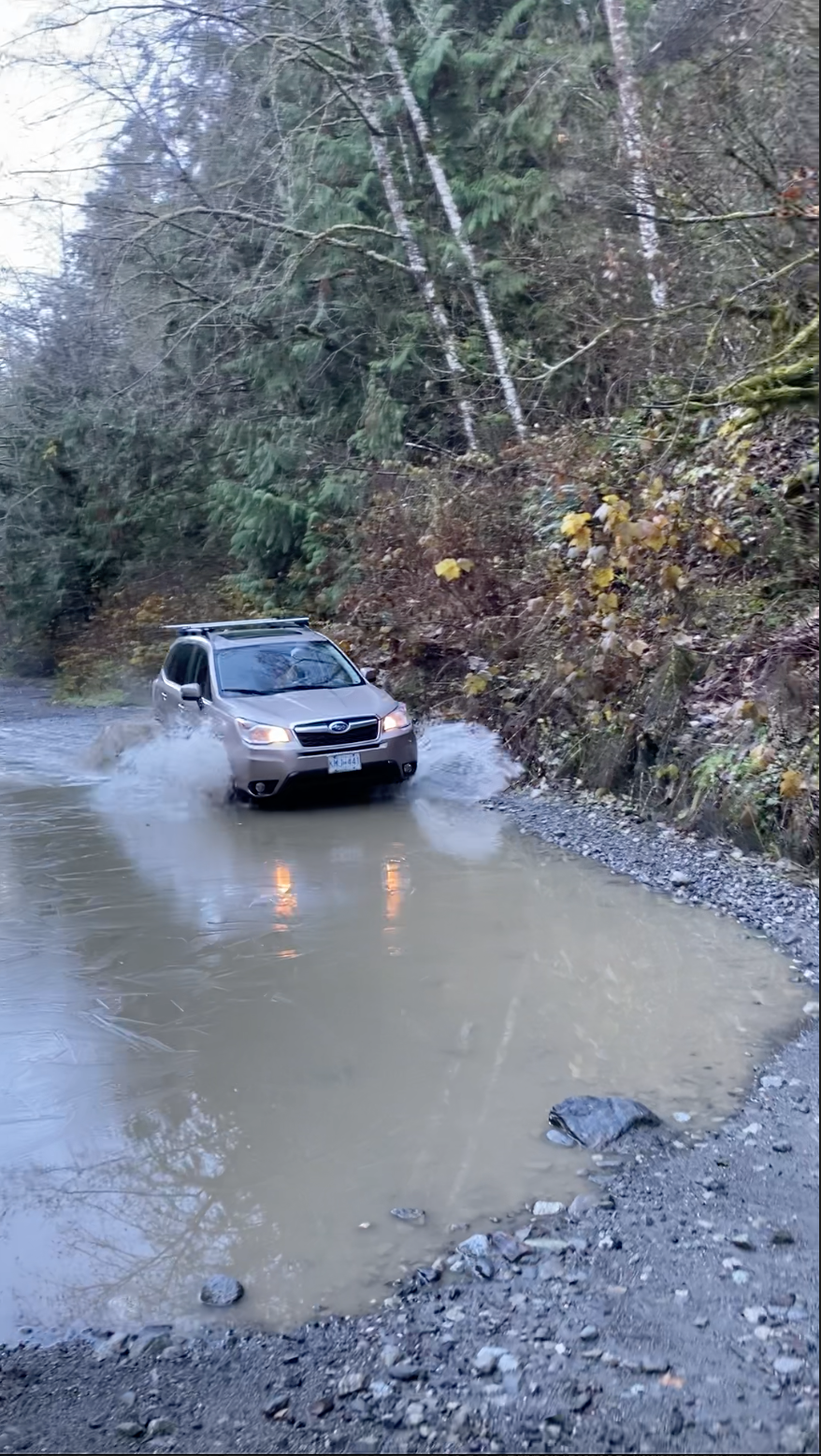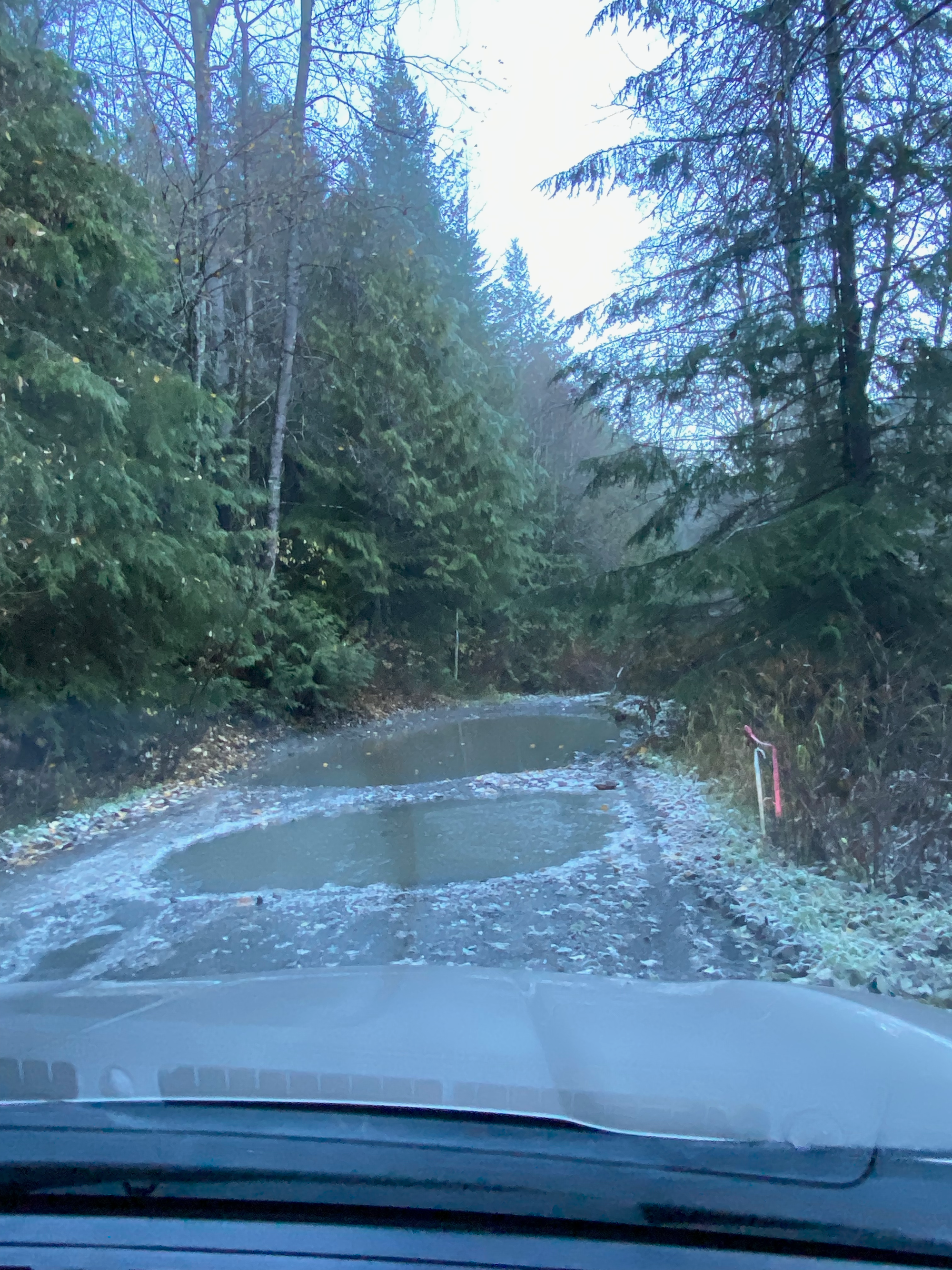 Dad and I drove up Chilliwack Lake Road to the Foley Creek FSR. The road was OK at first, but then we drove right at a T-junction and had to navigate through some absolutely massive potholes. You could probably swim this section if you wanted to.