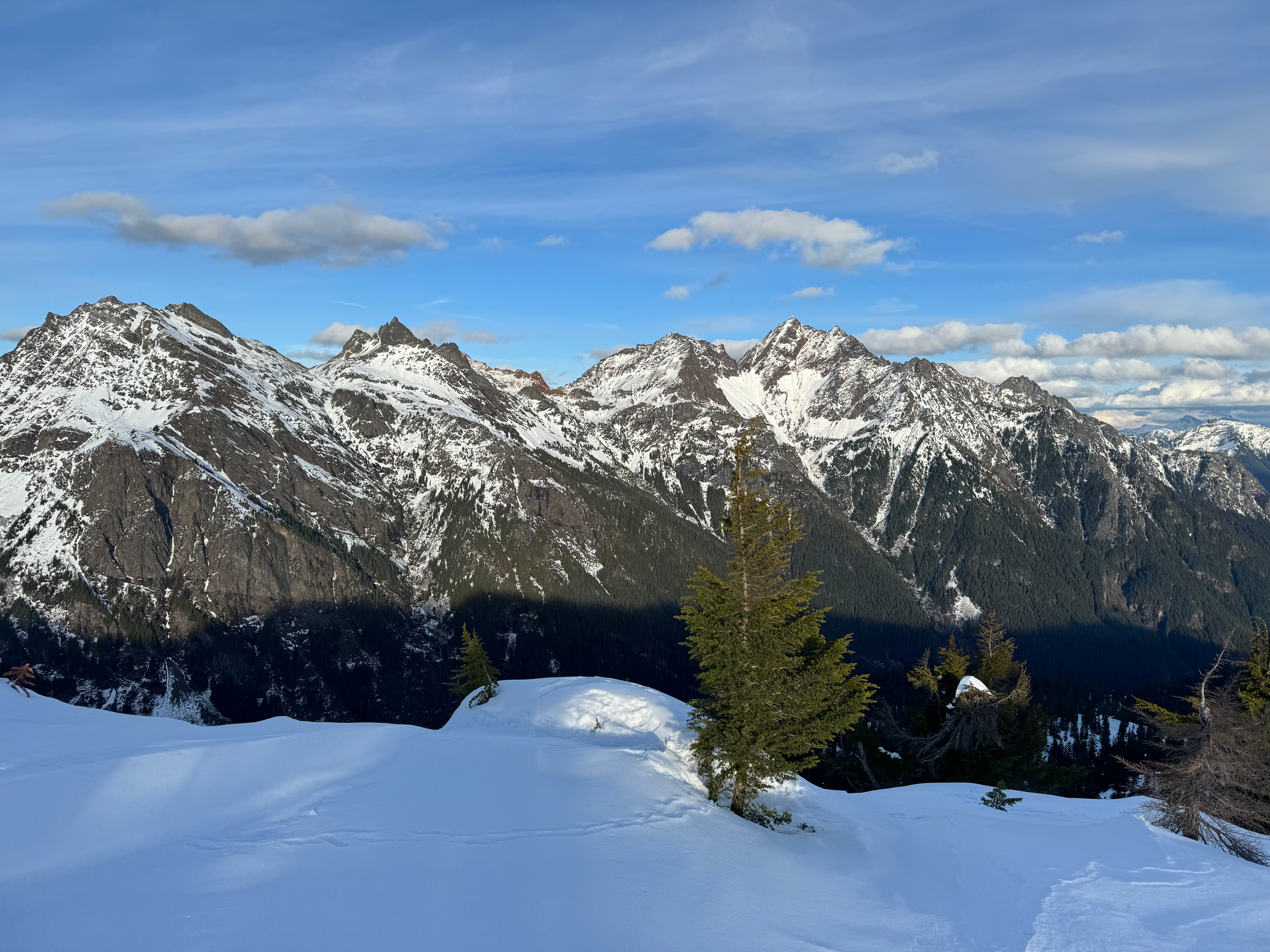 Eventually the trail left the FSR, but it was still very well-marked from there. We stayed on the ridge, hiking over many minor bumps and enjoying several viewpoints of the Cheam range and Slesse.