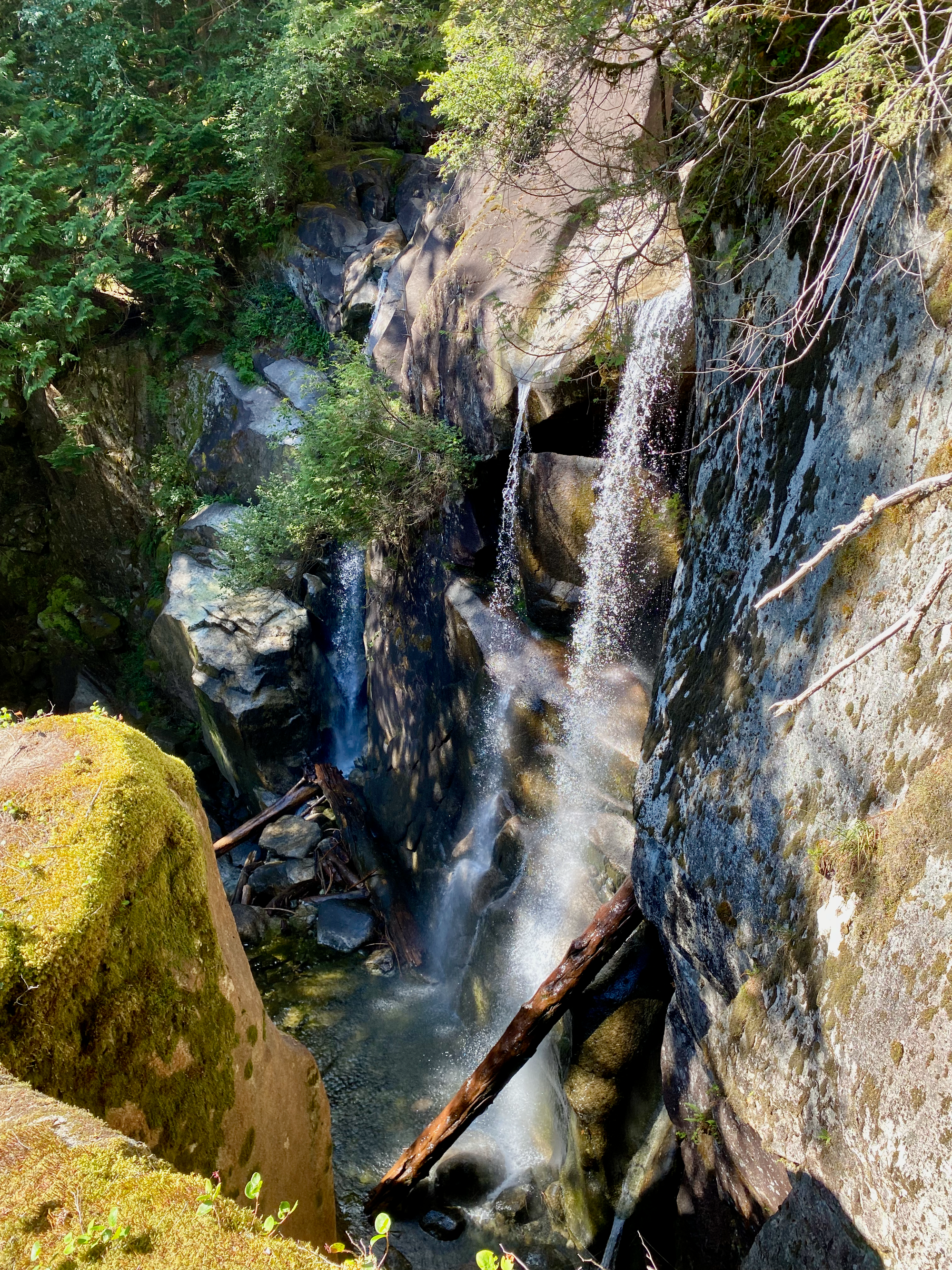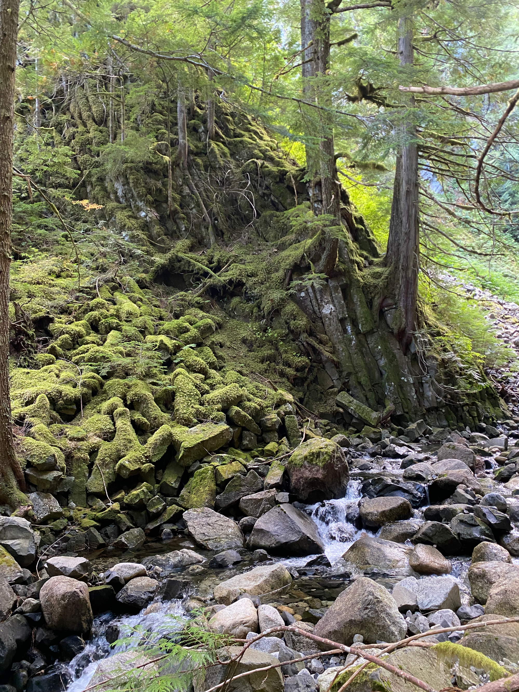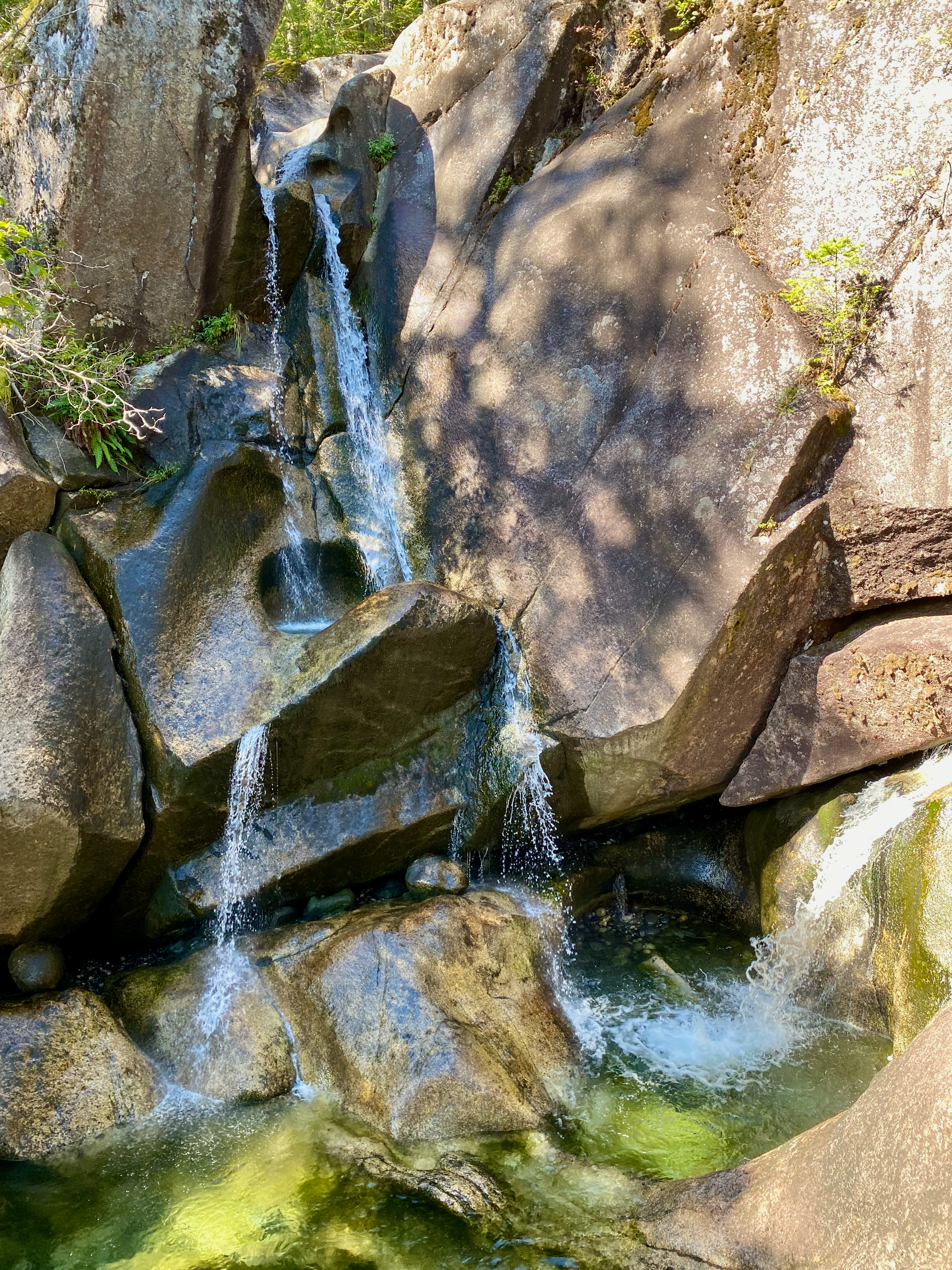 The adventure had begun! I hiked up the Echo Lake Trail to its namesake lake. The trail followed Monmouth Creek past deep granite pools, tall cascades, and granite sculpted into surreal shapes. The second half of the hike featured some cool basalt rock formations.