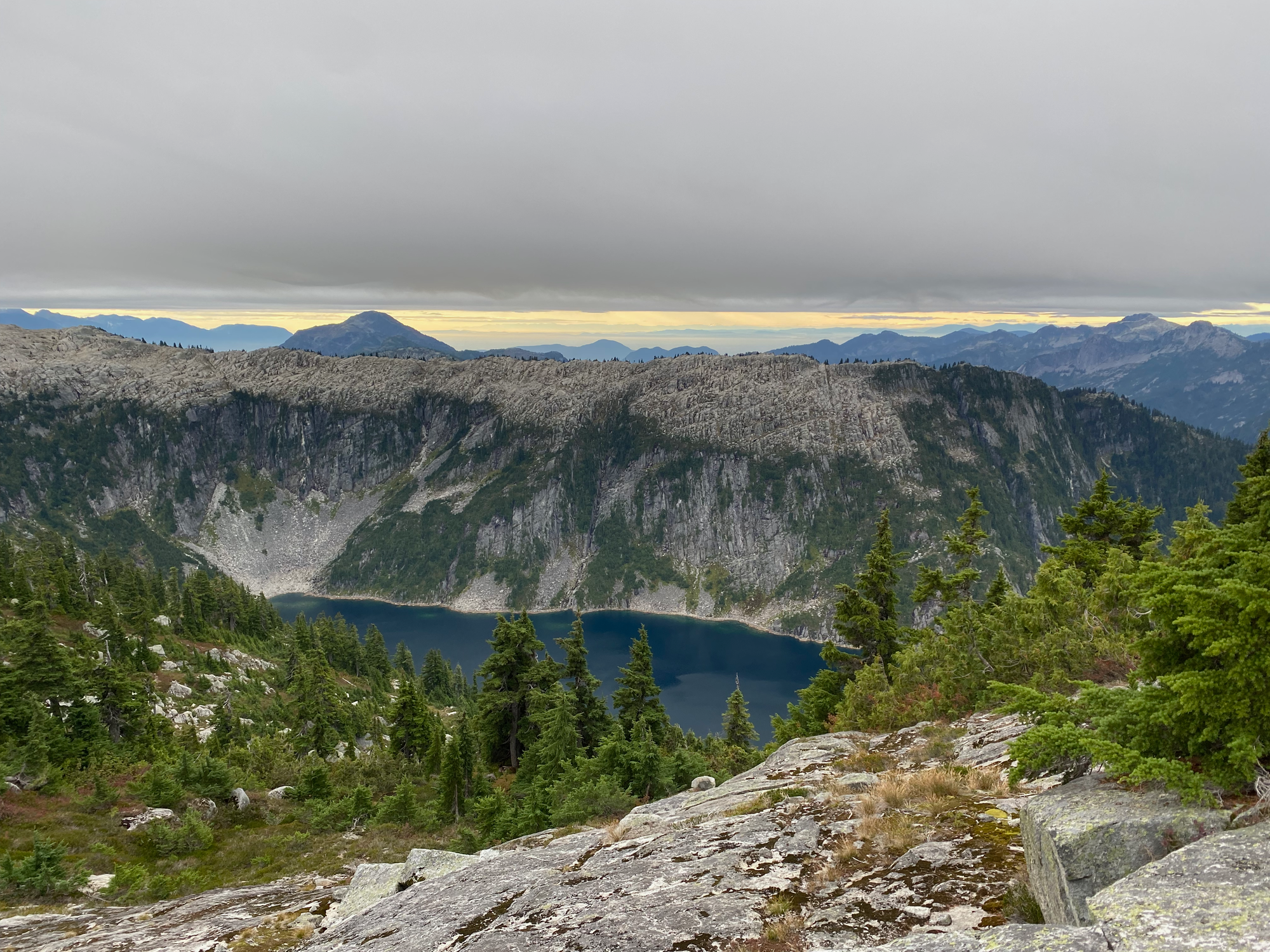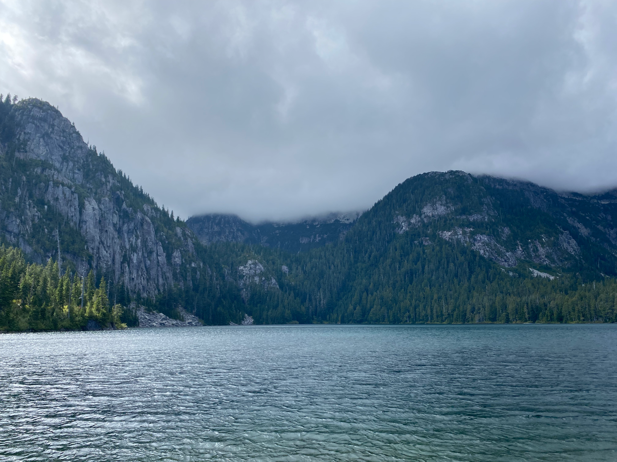 The lake itself was surrounded by peaks and offered several campsites. Clouds rolled in as soon as I arrived there.