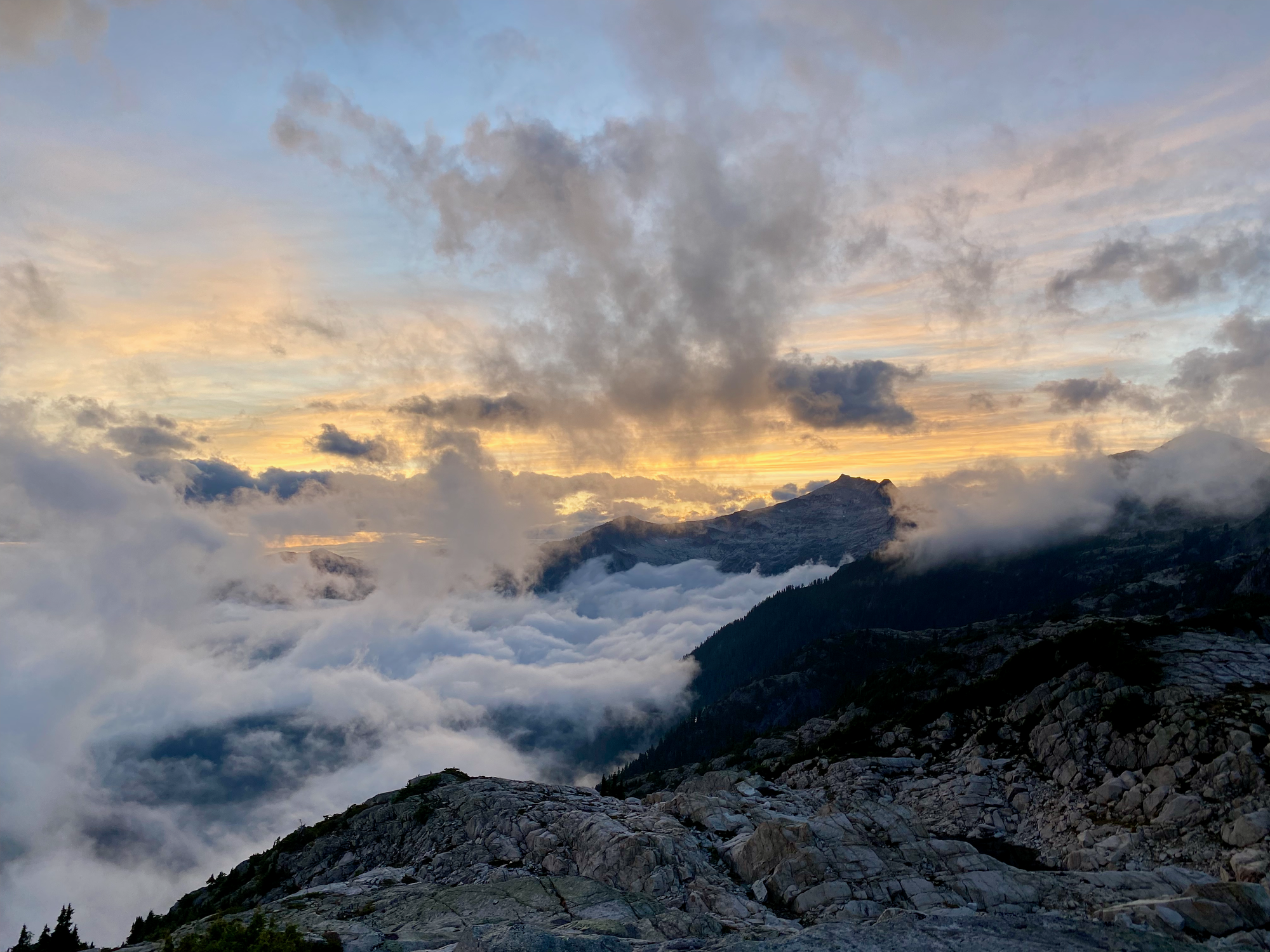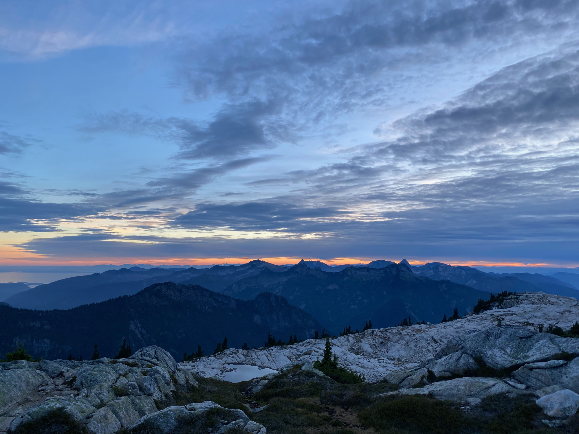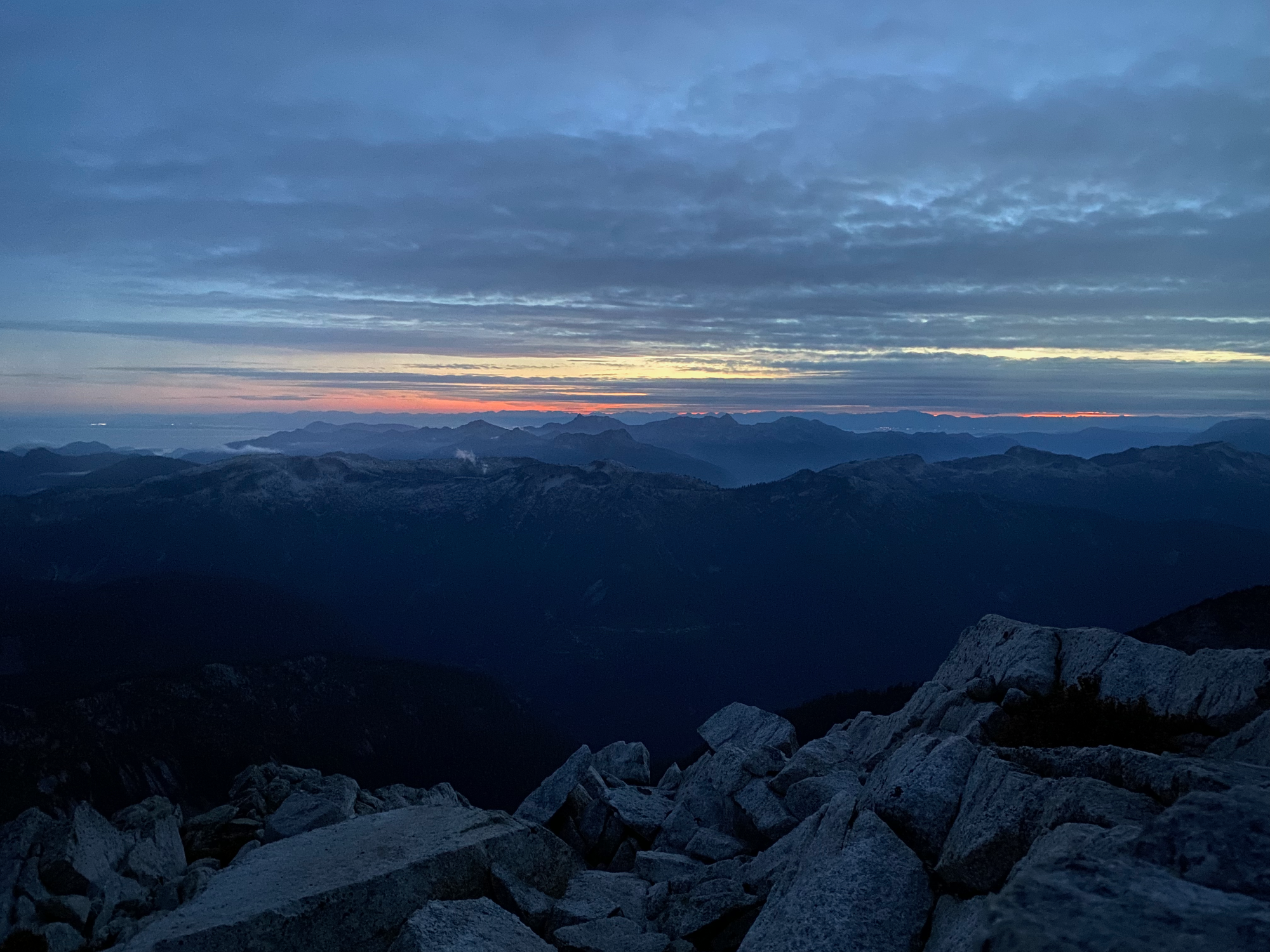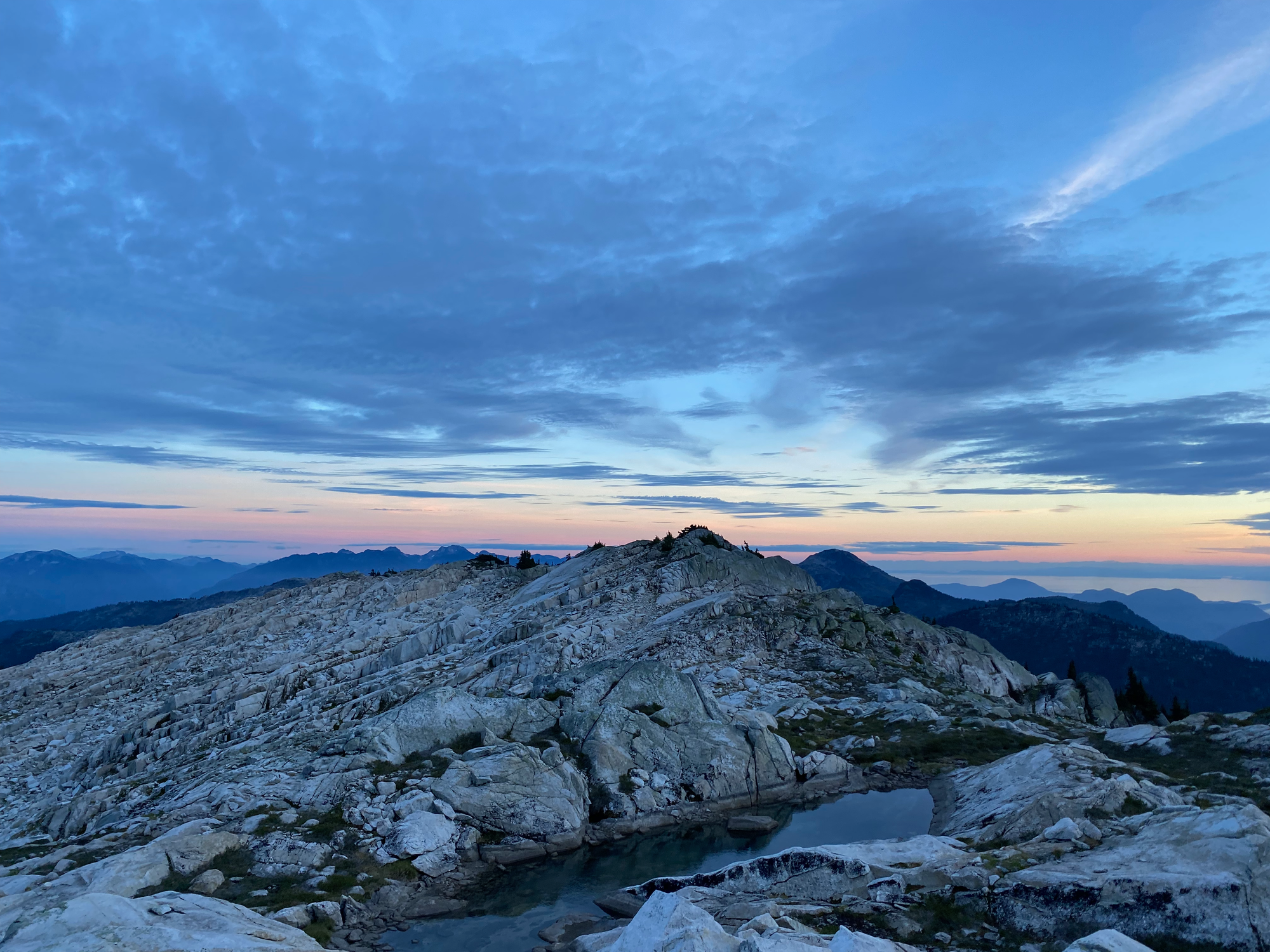 I’d planned to continue a bit further that day, but instead I decided to camp near the summit and come back if/when the clouds dissipated the next morning. From my campsite I could see the lights of Vancouver, Victoria, Nanaimo, and Britannia Beach, but my perch still felt extremely remote.