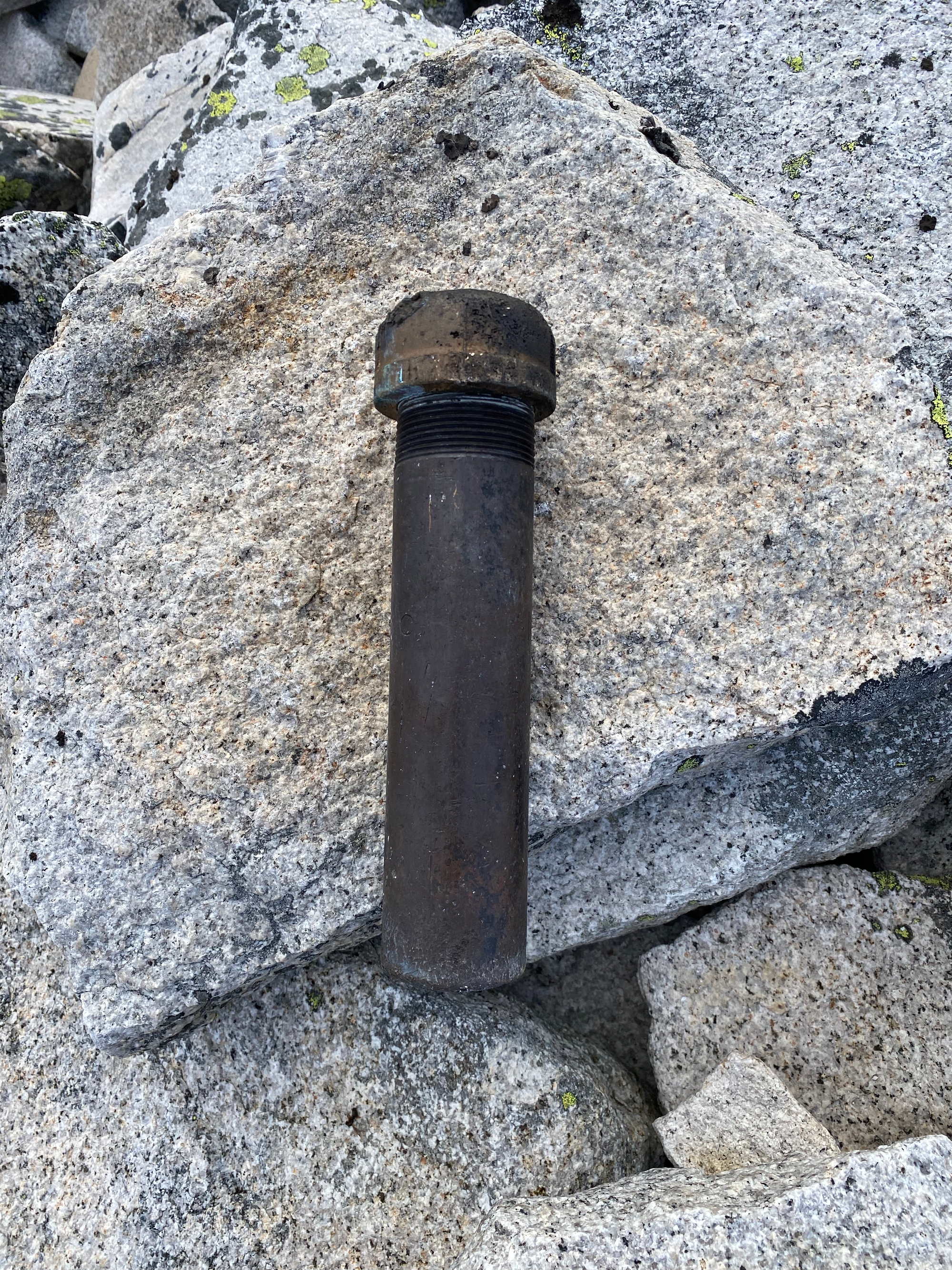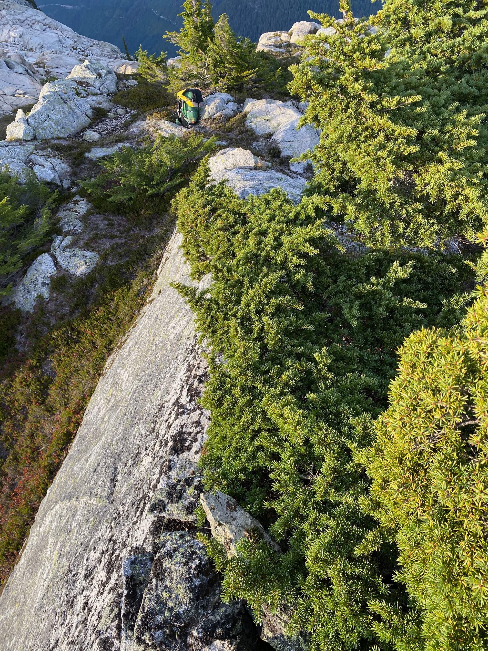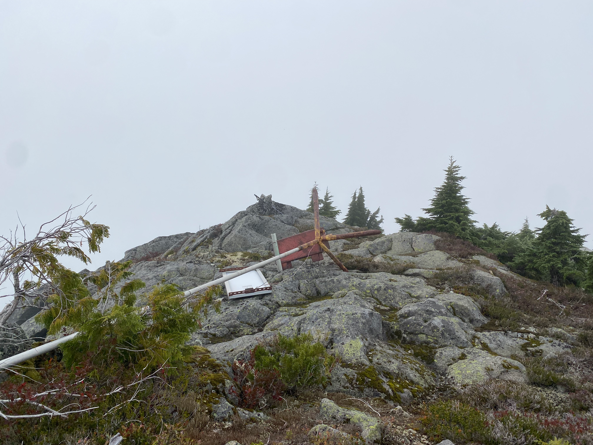 The highest point was a large boulder covered in krummholtz trees. Beneath one of these trees, a well-hidden cairn concealed a small canister containing a summit register. The oldest entry was a BCMC trip from 1943! There were no entries between 1974 and Thomas Morrissey’s trip in 2023.