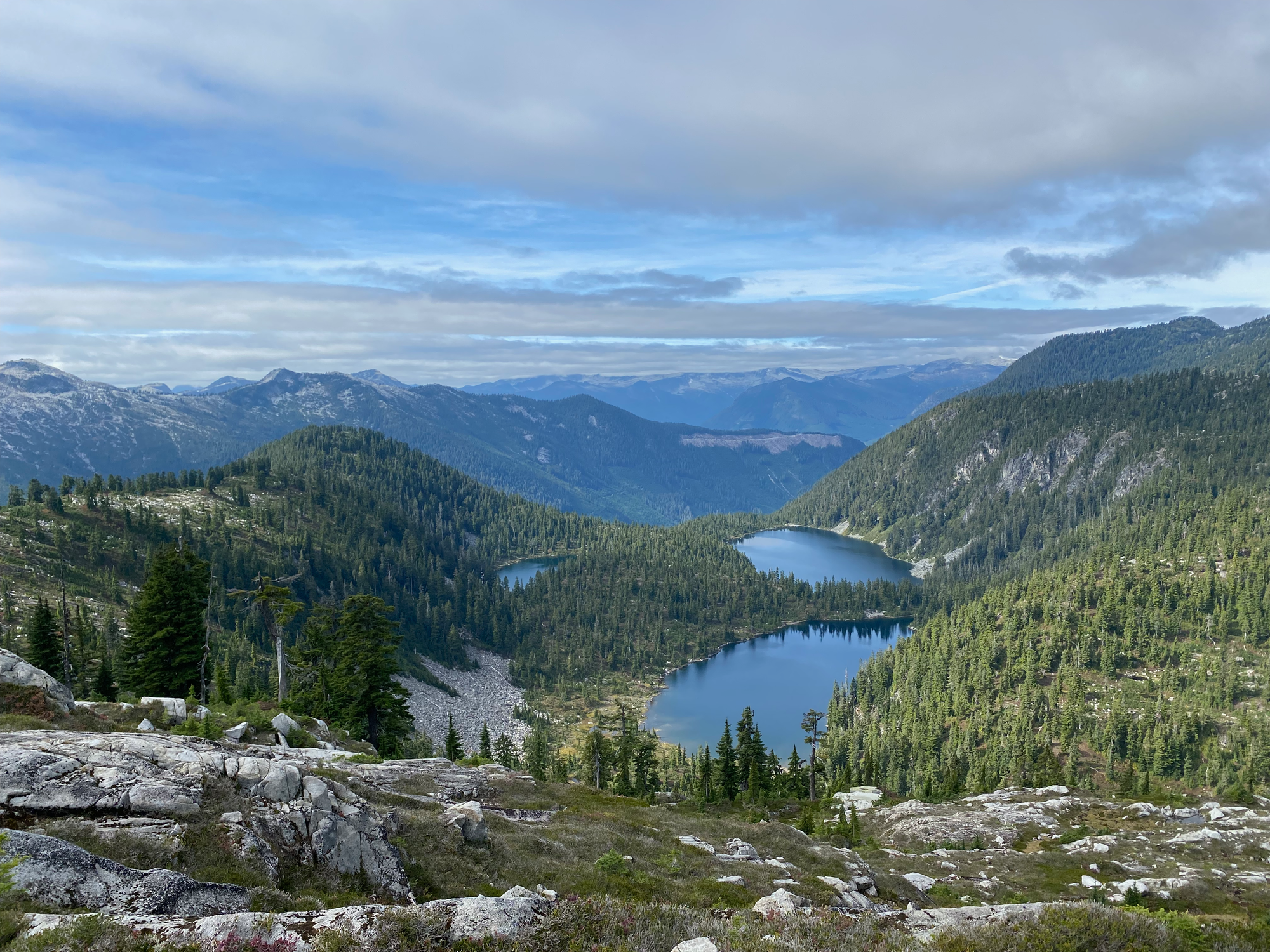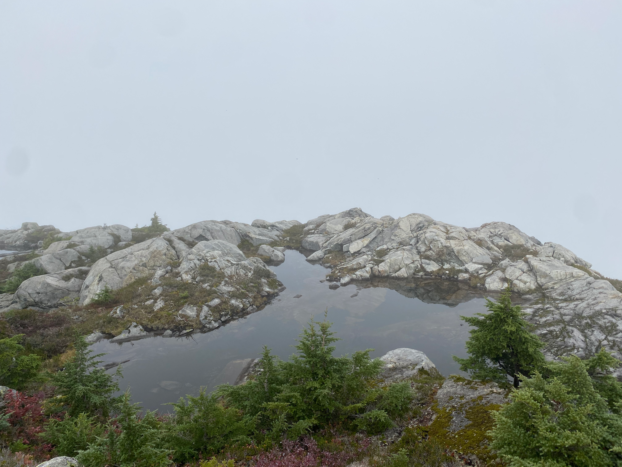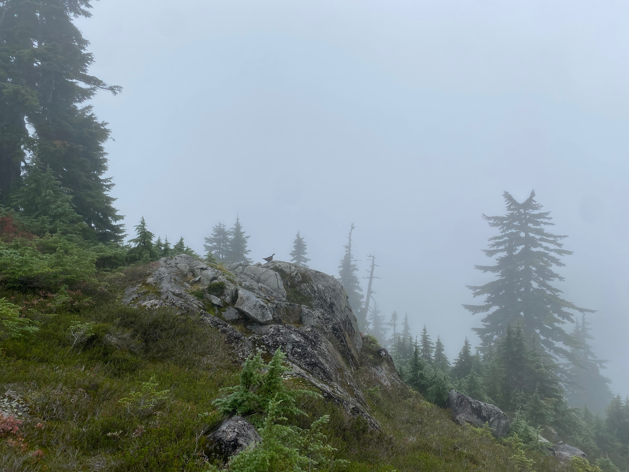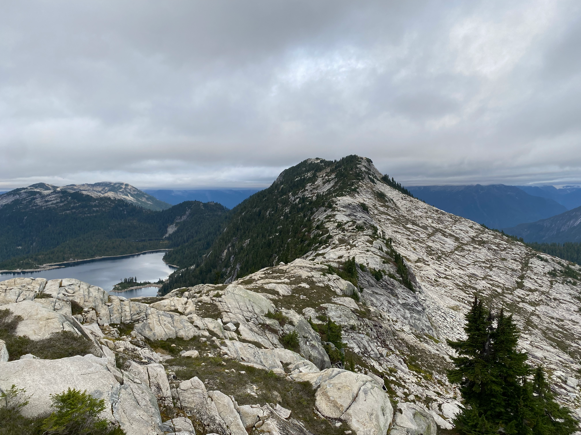 I still had enough time to explore a bit of the ridge before the rain came, so I did a quick 5km out and back from Henriette to “Nootka Peak”, the highpoint of Sechelt Ridge. This was a fun granite ridge walk with very little bush and good views of Sechelt Lake to the south. Nootka Peak had a large, partially collapsed summit cairn but no sign of a summit register. On the way back the rain started.
