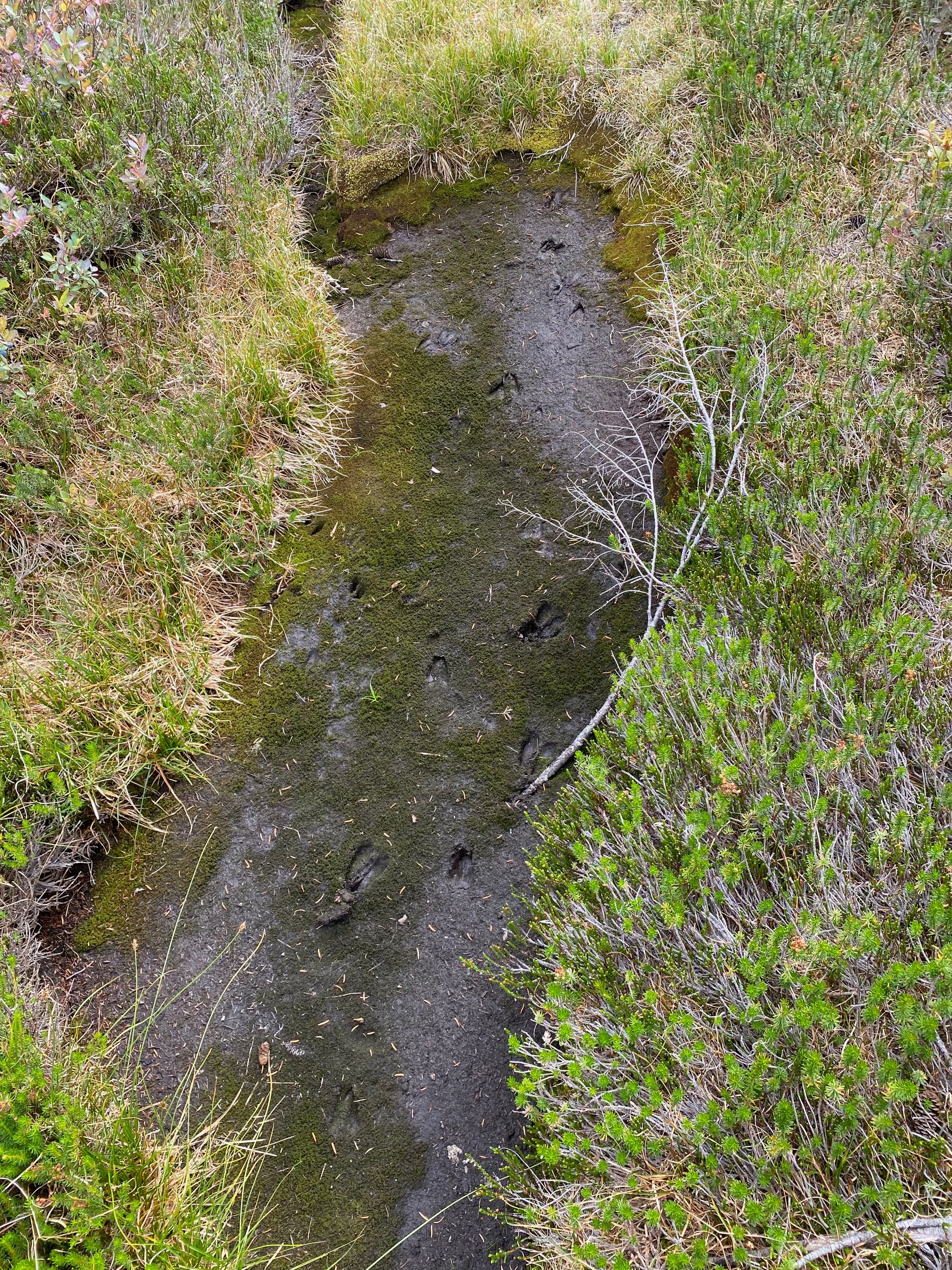 The road led west through alder patches and bogs. After a couple kilometres it joined a much newer road.