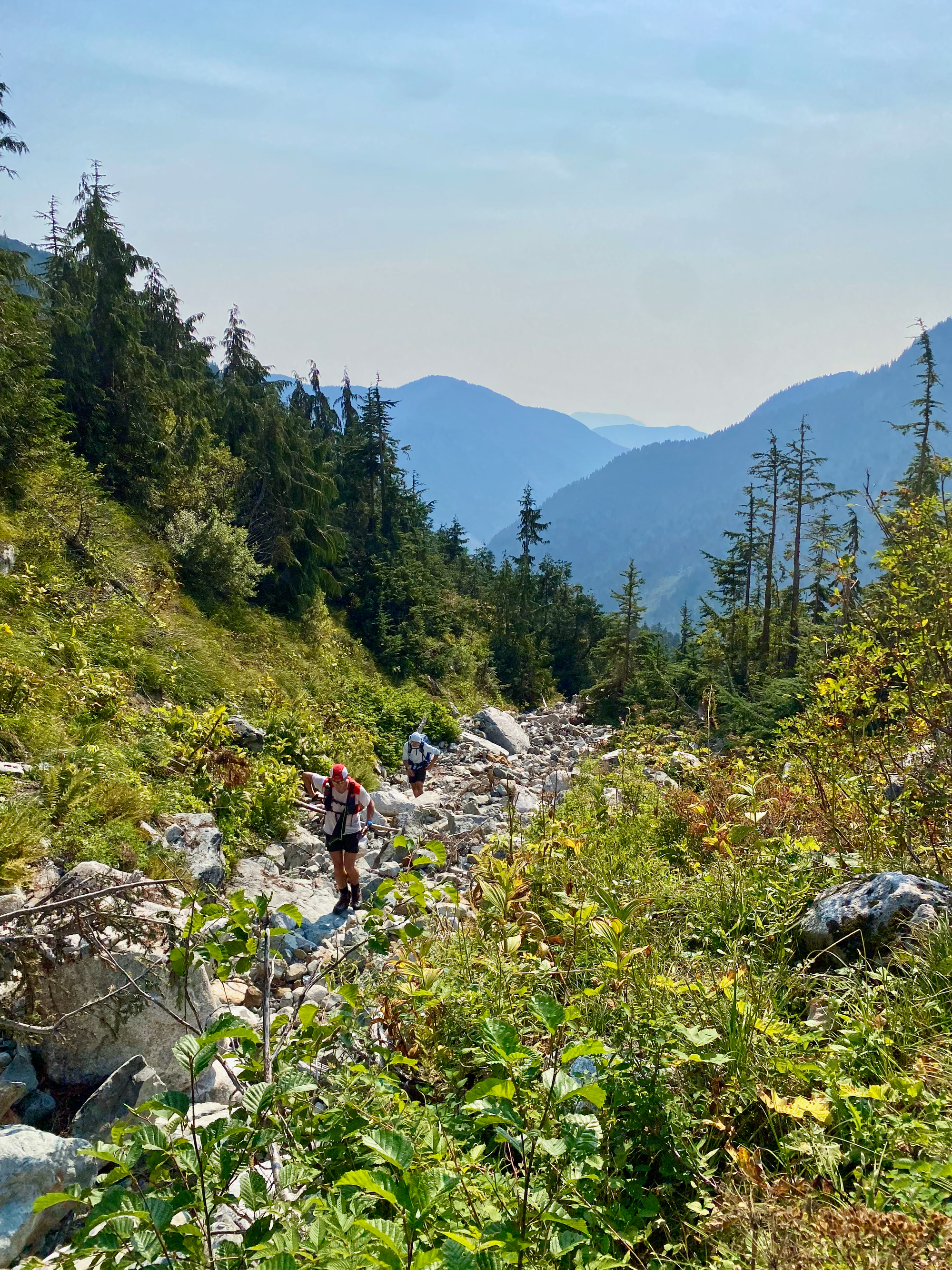I hiked to Tetrahedron with David and Phil from the SWBC Peakbaggers group. I left home at 5am to avoid Gran Fondo-related chaos and quickly picked David up at Park Royal. We made it onto the highway as they were closing the exits. Despite arriving so early, we barely made it onto the ferry.