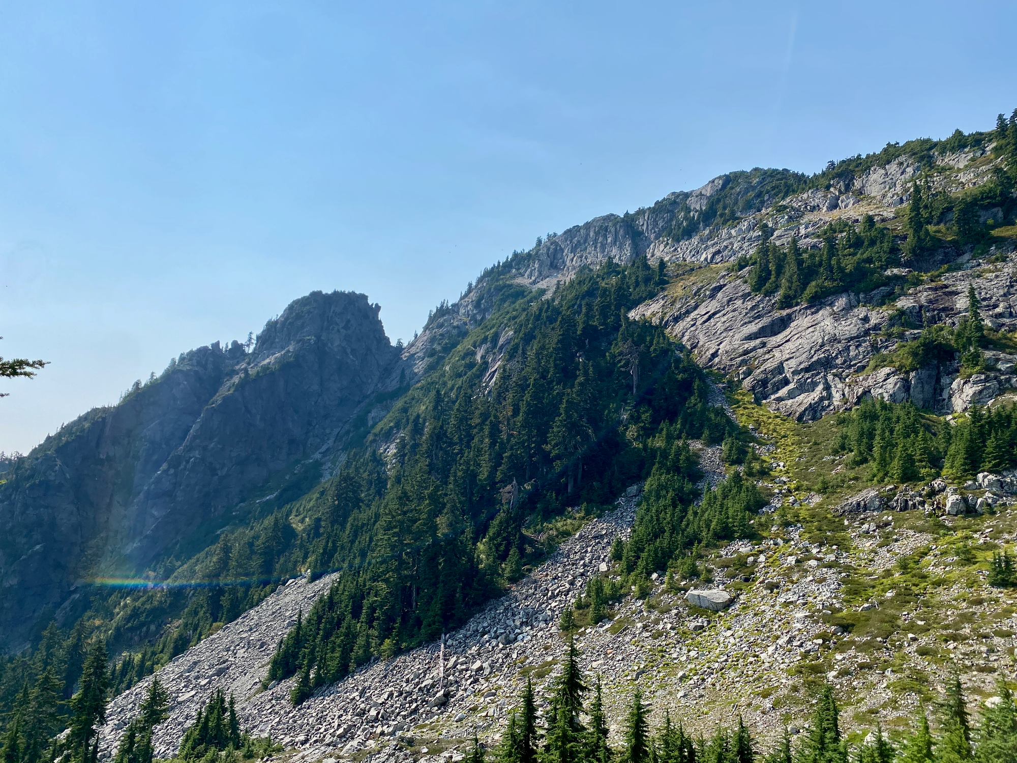 From there, the trail climbed up the ridge at an even steeper angle. Due to the dry conditions, the accumulated pine needles were quite slippery and veggie belaying was needed to stay on track. At one point we startled a bear, who promptly ran away, probably surprised to see humans up there.