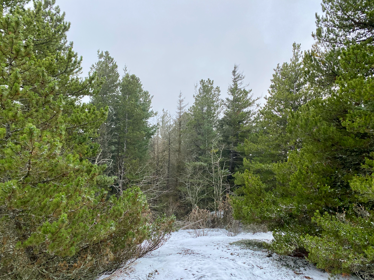 The summit area had a few more viewpoints through the pines, but these were clouded over. I think the highest point (no views) is an outcrop just past the “north viewpoint”. There is a memorial just below this point.