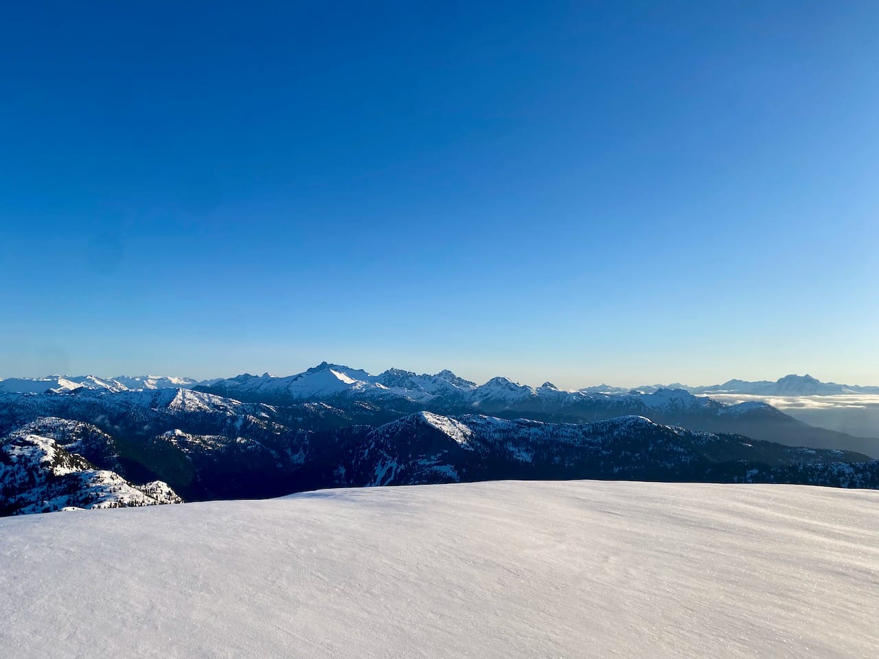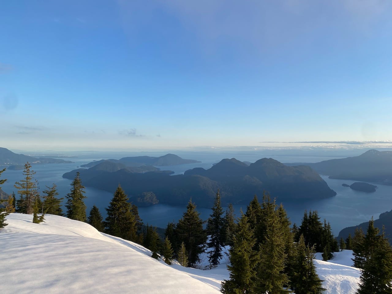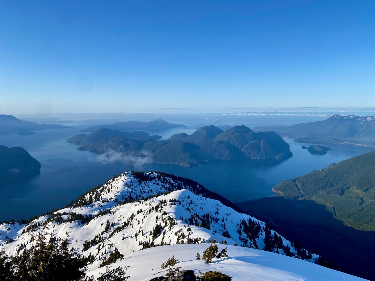 Eventually I reached the summit, a large, relatively flat area. Here there were new views north to Squamish and west to the more remote reaches of the Lower Sunshine Coast.