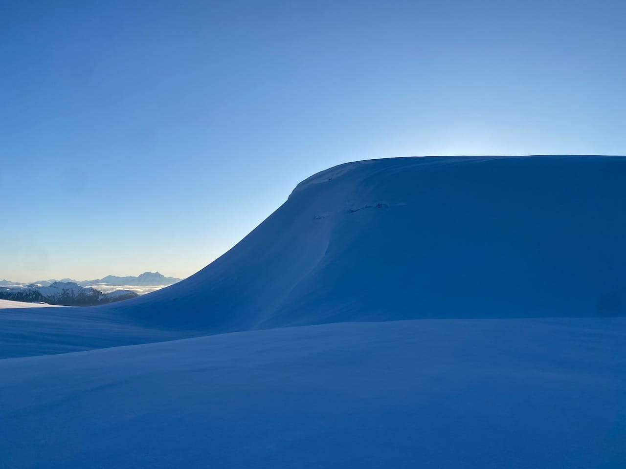 The final climb up the pipeline route was tedious, and the soft snow didn’t help, but I eventually made it to the pass.