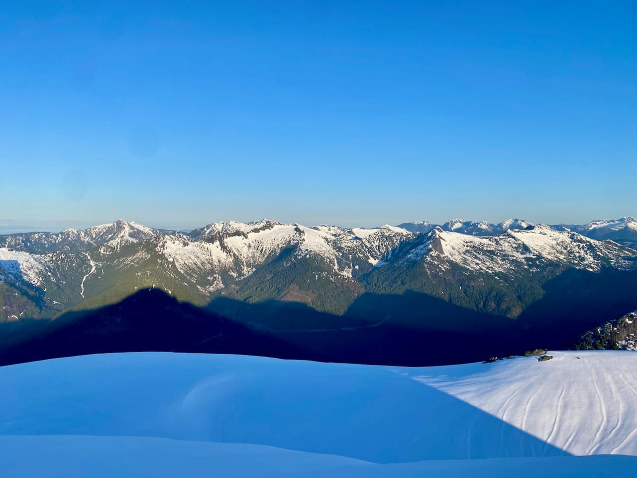 At this point I realized I might make the 6:40pm ferry if I hustled. I snowshoe-skied down the pipeline swath, wishing I had my actual skis, then jogged down the FSR. At one point I was passed by a family in a Jeep, surprisingly enough. Once at the car, the drive to Port Mellon and the discussion with the gatekeeper went by quickly. I was passed by several cars going at very high speeds, clearly in the same boat as me (literally). I arrived just in time to miss the 6:40 ferry, but was able to board another one less than an hour later.