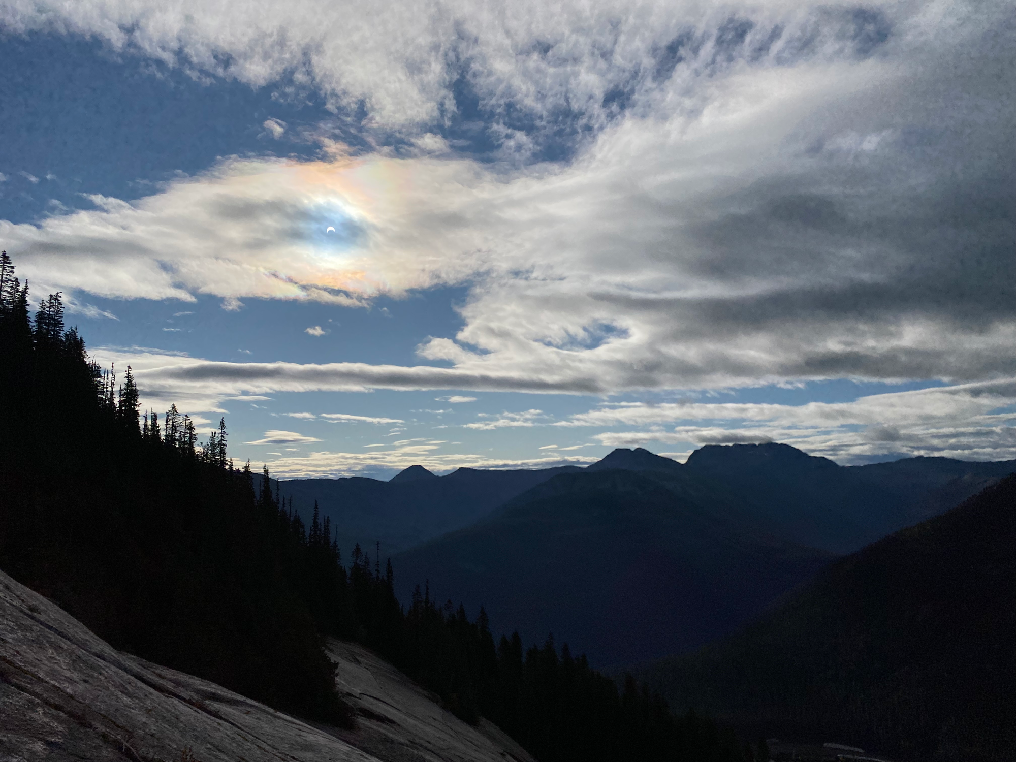 About halfway up, I was treated to a partial solar eclipse. Looking through my phone screen (I had no eclipse glasses), I saw the moon overlap the sun through a cloud. The environment around me felt a little darker and colder. It was interesting, but it didn’t compare to the absolutely mind-blowing experience of a total solar eclipse, which I was lucky enough to see in April 2024.