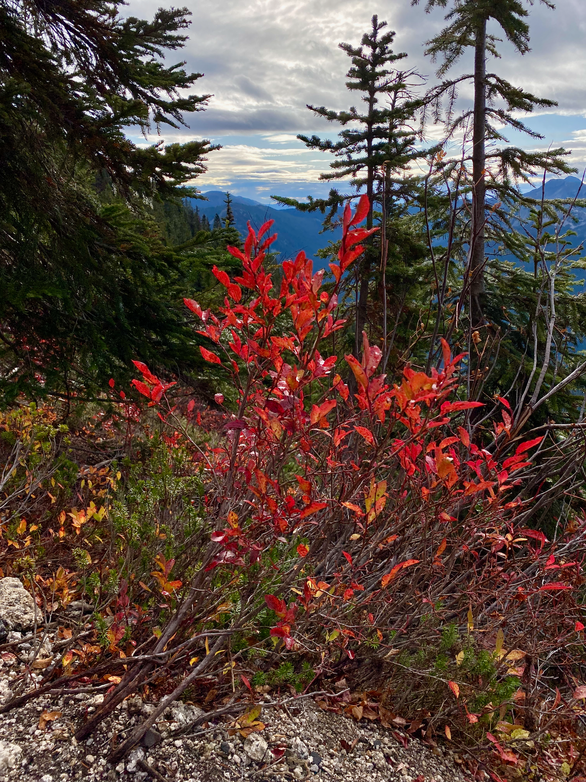 For the first couple kilometres, the route follows the highway eastward. Watch out for rocks kicked up by trucks. The trail descended north into a swampy area before reaching a memorial for Michael Allen, who died “while descending Yak Mtn” in 2020. Further up the trail, there’s a memorial for Eric Joel Holtz who also died on this mountain in 2020.